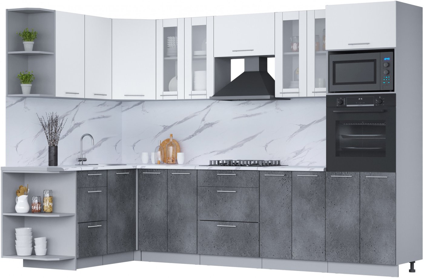 Готовая кухня Интерлиния Мила 1.68x3.0 левая (белый платинум/бетон портленд/белый гранит)
