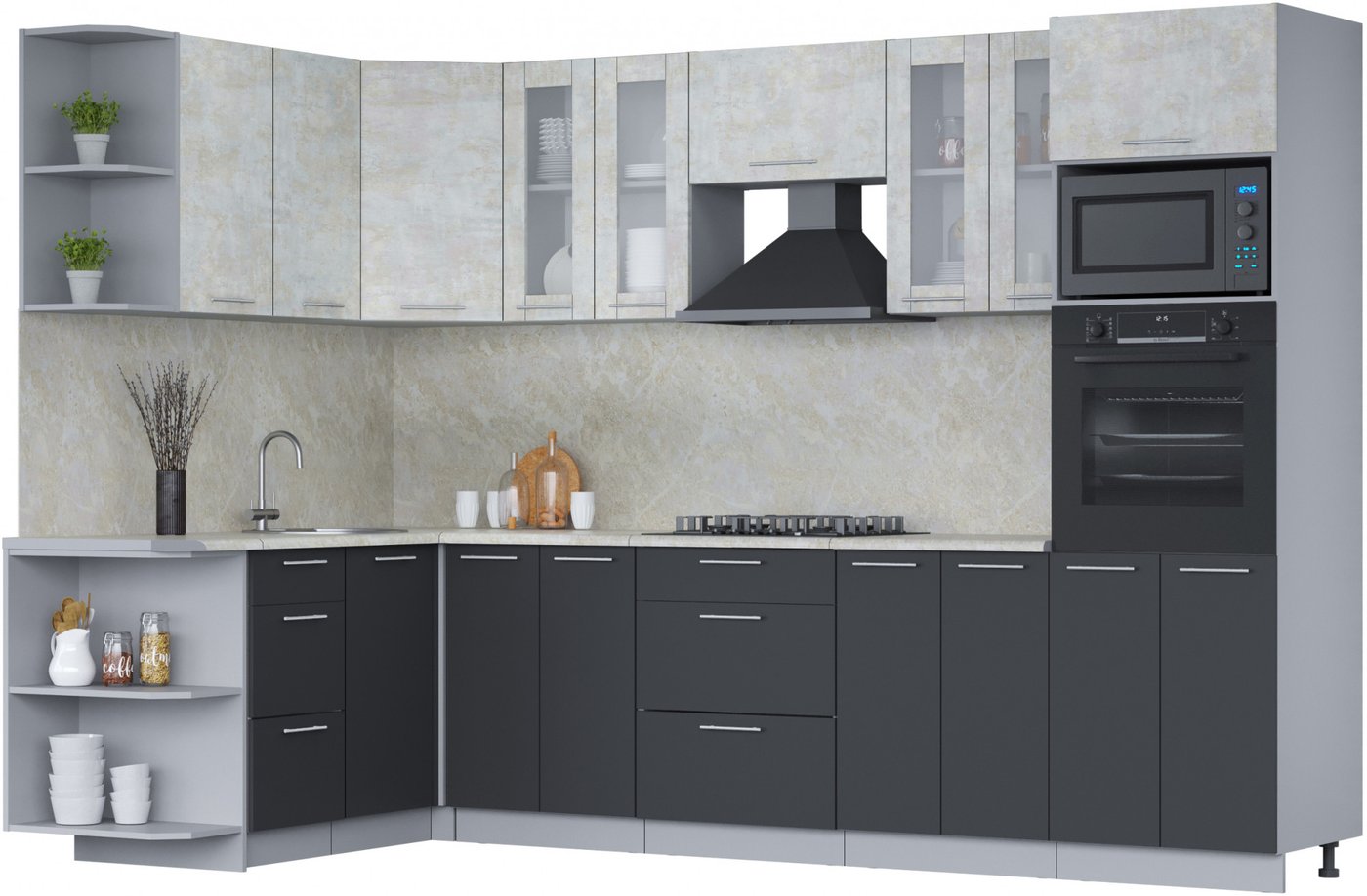 Готовая кухня Интерлиния Мила 1.68x3.0 правая (бетон лайт/антрацит/опал светлый)