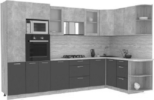 Готовая кухня Интерлиния Мила 1.68x3.2 правая (бетон-антрацит-травертин)