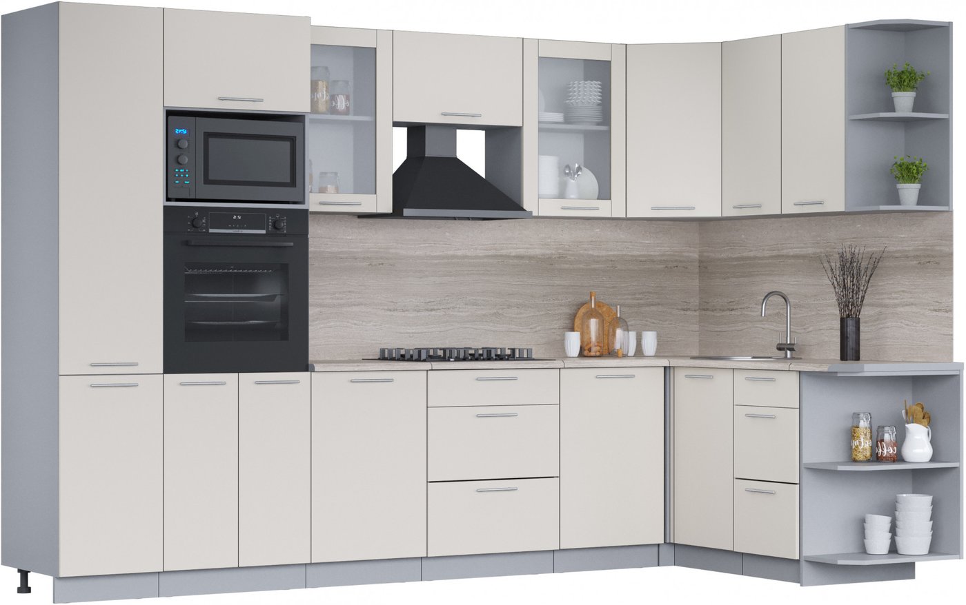 Готовая кухня Интерлиния Мила 1.68x3.2 правая (персидский жемчуг/персидский жемчуг/травертин серый)
