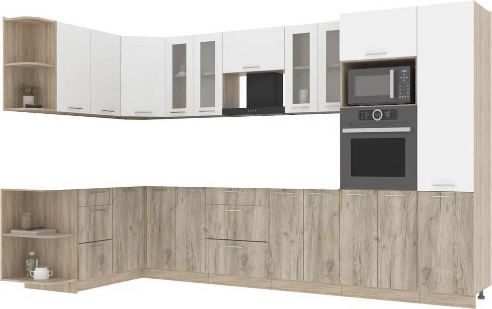 угловая, длина 340 см, ширина 168 см, каркас ЛДСП, фасад ЛДСП, установка мойки: врезная мойка, ширина шкафа под мойку 98 см
