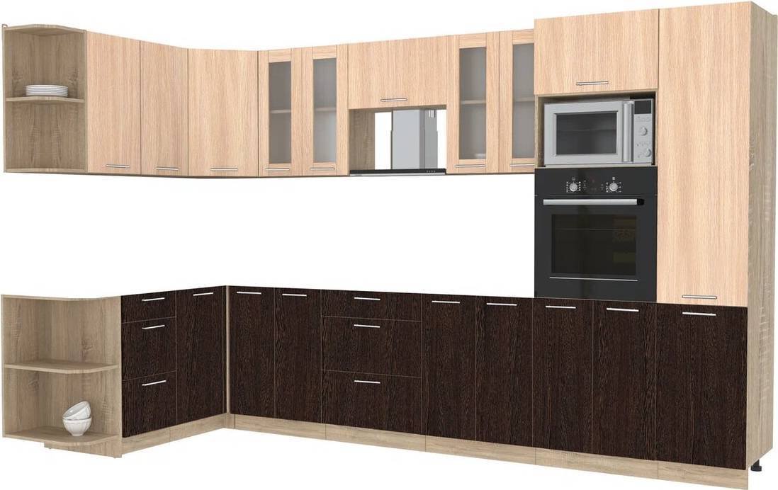 угловая, длина 340 см, ширина 168 см, каркас ЛДСП, фасад ЛДСП, установка мойки: врезная мойка, ширина шкафа под мойку 98 см
