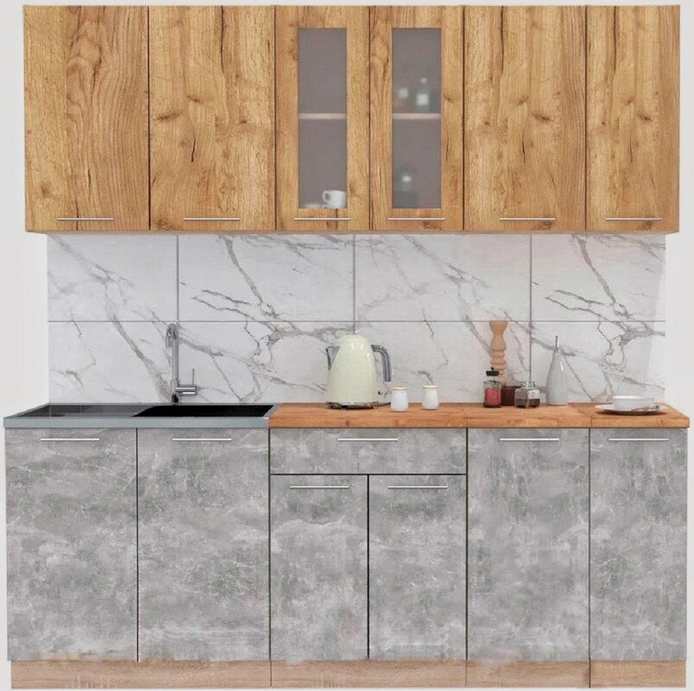 Готовая кухня Интерлиния Мила 1.88x2.4 левая (дуб золотой-бетон-дуб бунратти)