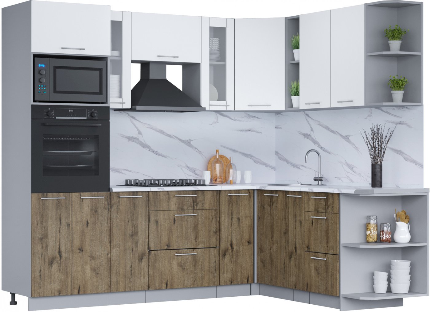 Готовая кухня Интерлиния Мила 1.88x2.4 правая (белый платинум/дуб веллингтон/белый гранит)