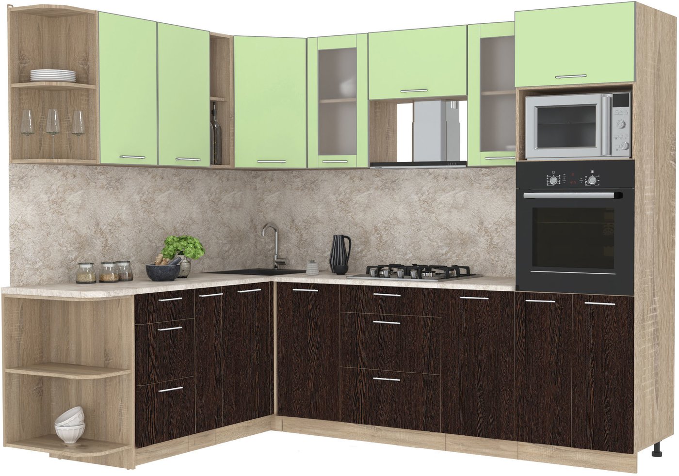 Готовая кухня Интерлиния Мила 1.88x2.6 левая (салатовый-дуб венге-малага)