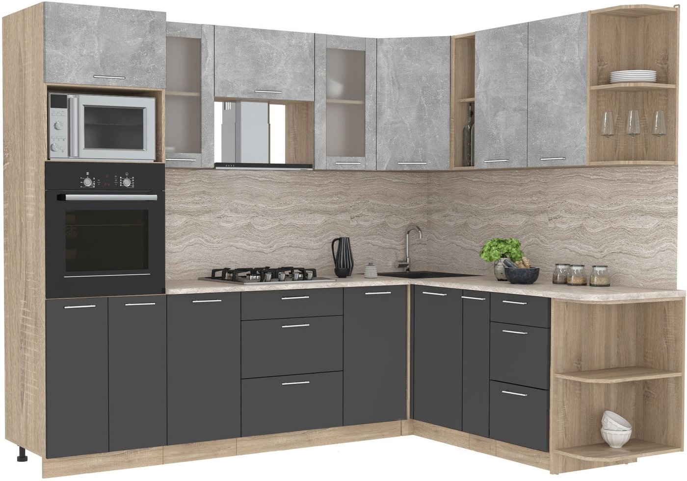 Готовая кухня Интерлиния Мила 1.88x2.6 правая (бетон-антрацит-травертин)