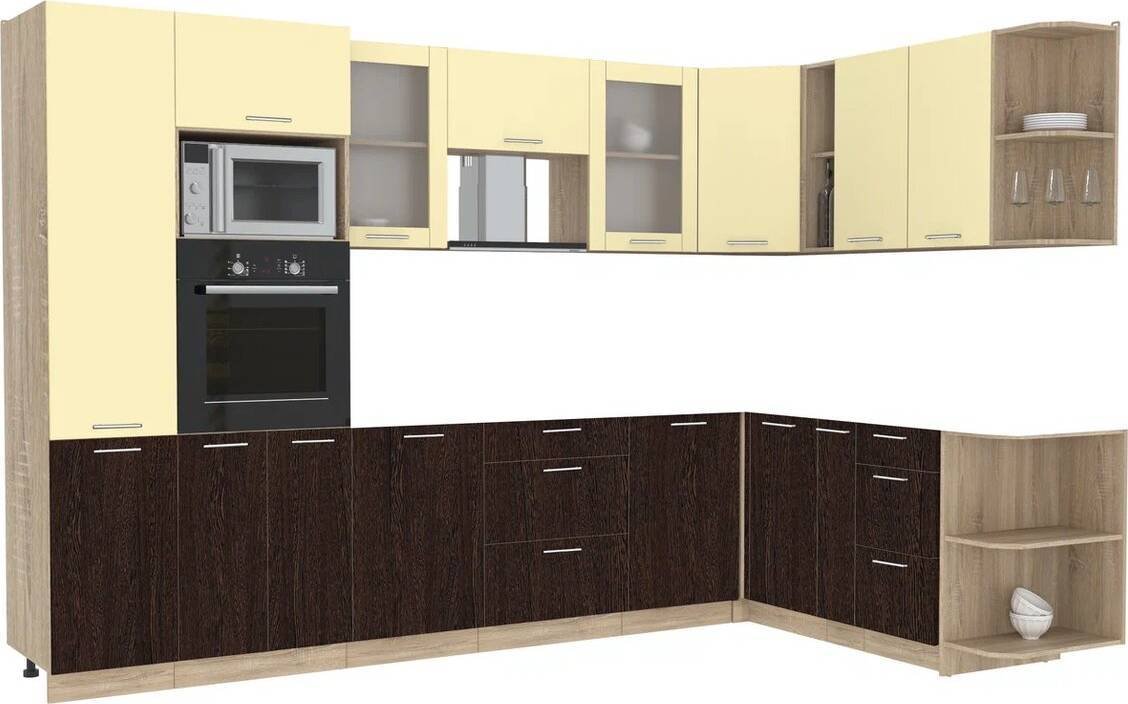 Готовая кухня Интерлиния Мила 1.88x3.2 правая без столешницы (ваниль/дуб венге)
