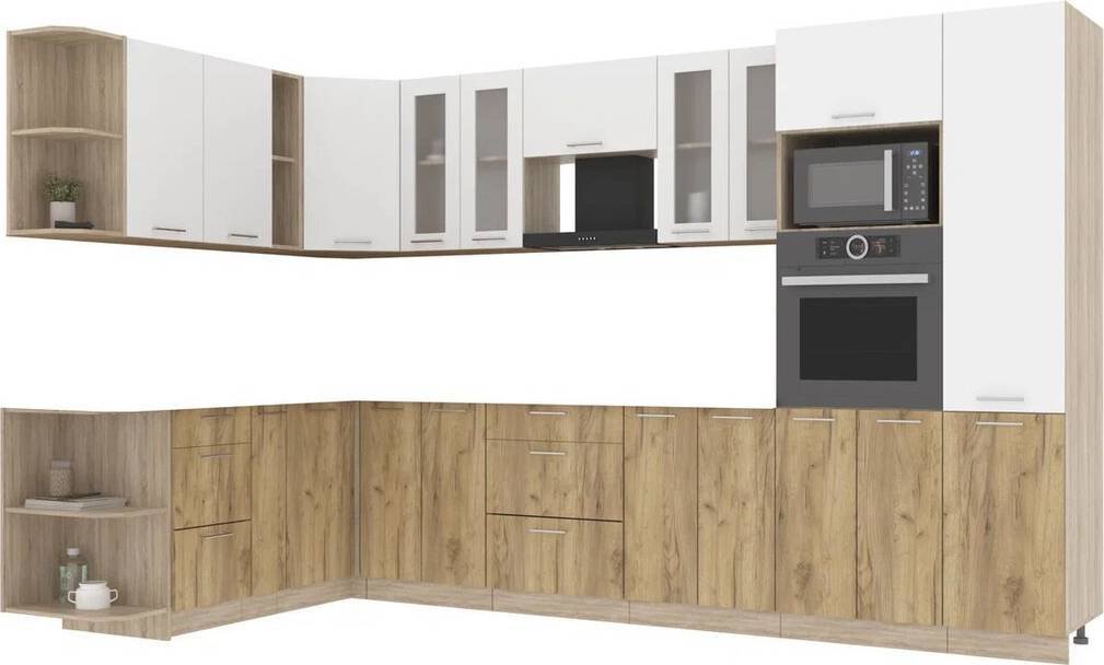 угловая, длина 340 см, ширина 188 см, каркас ЛДСП, фасад ЛДСП, установка мойки: врезная мойка, ширина шкафа под мойку 98 см