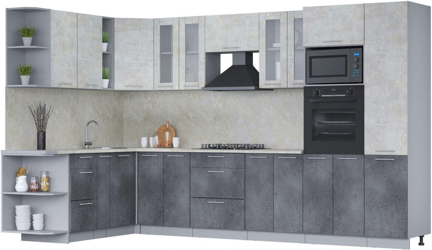 Готовая кухня Интерлиния Мила 1.88x3.4 левая (бетон лайт/бетон портленд/опал светлый)