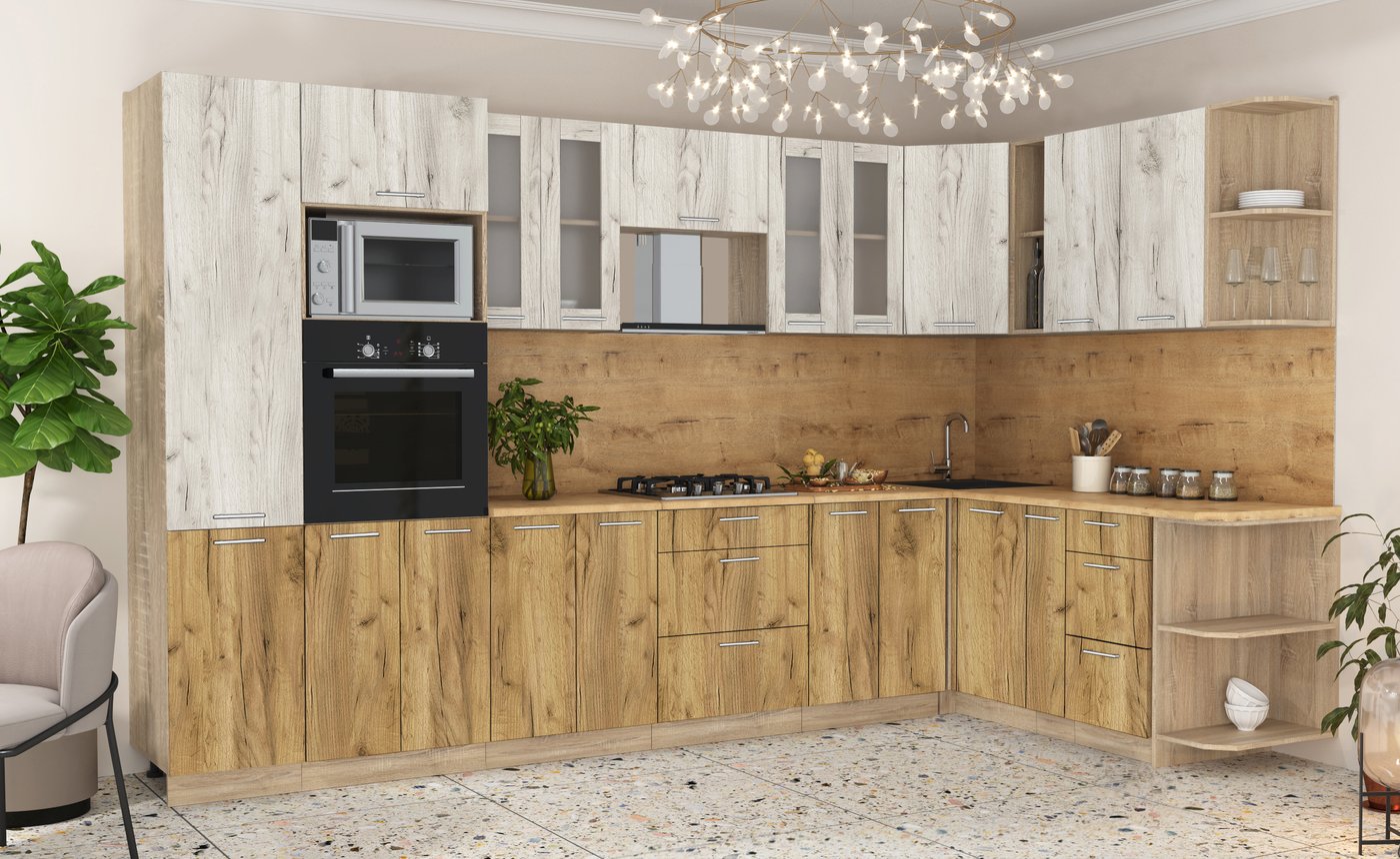 Готовая кухня Интерлиния Мила 1.88x3.4 правая (дуб белый/дуб золотой/дуб бунратти)