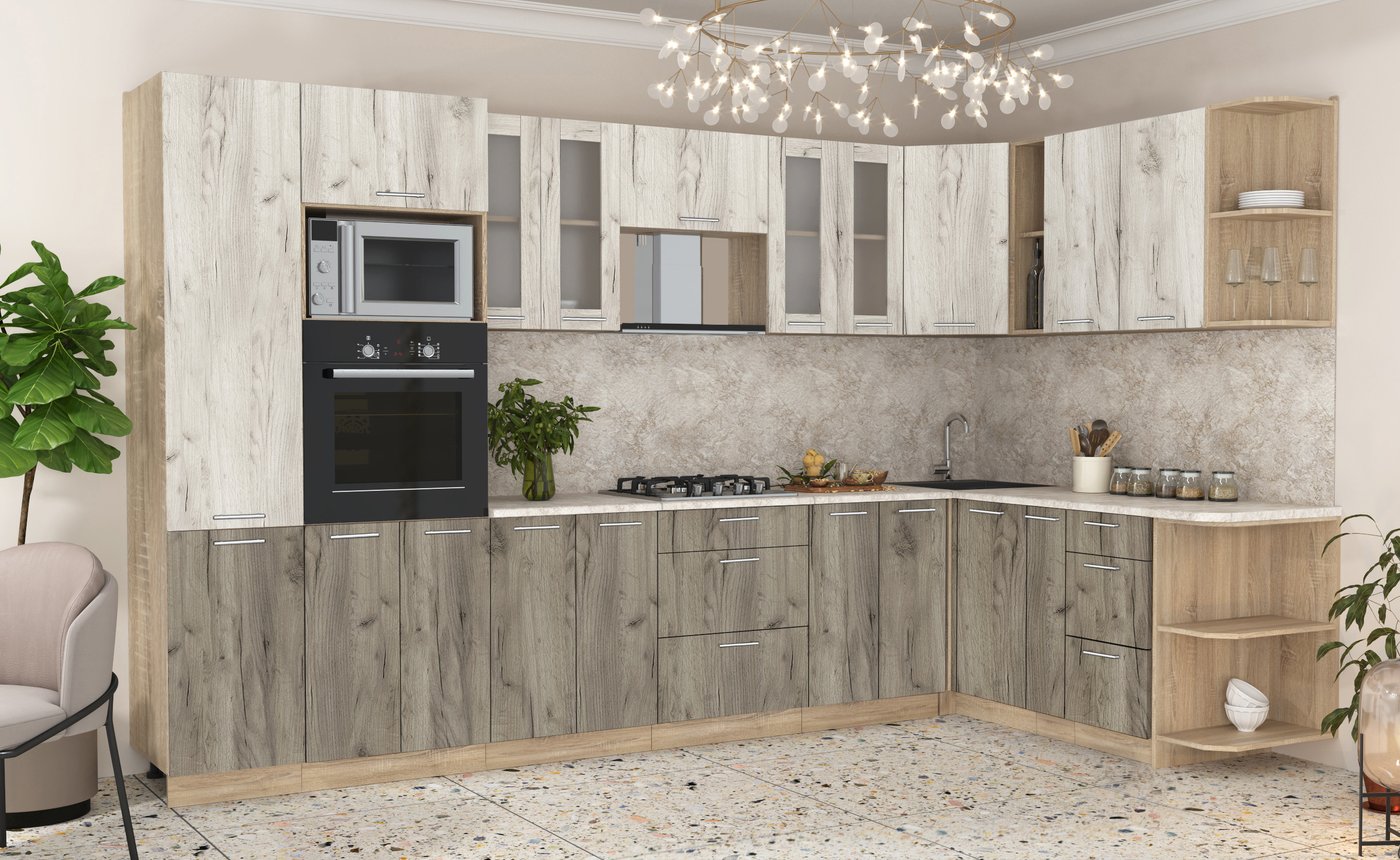Готовая кухня Интерлиния Мила 1.88x3.4 правая (дуб белый/дуб серый/малага)