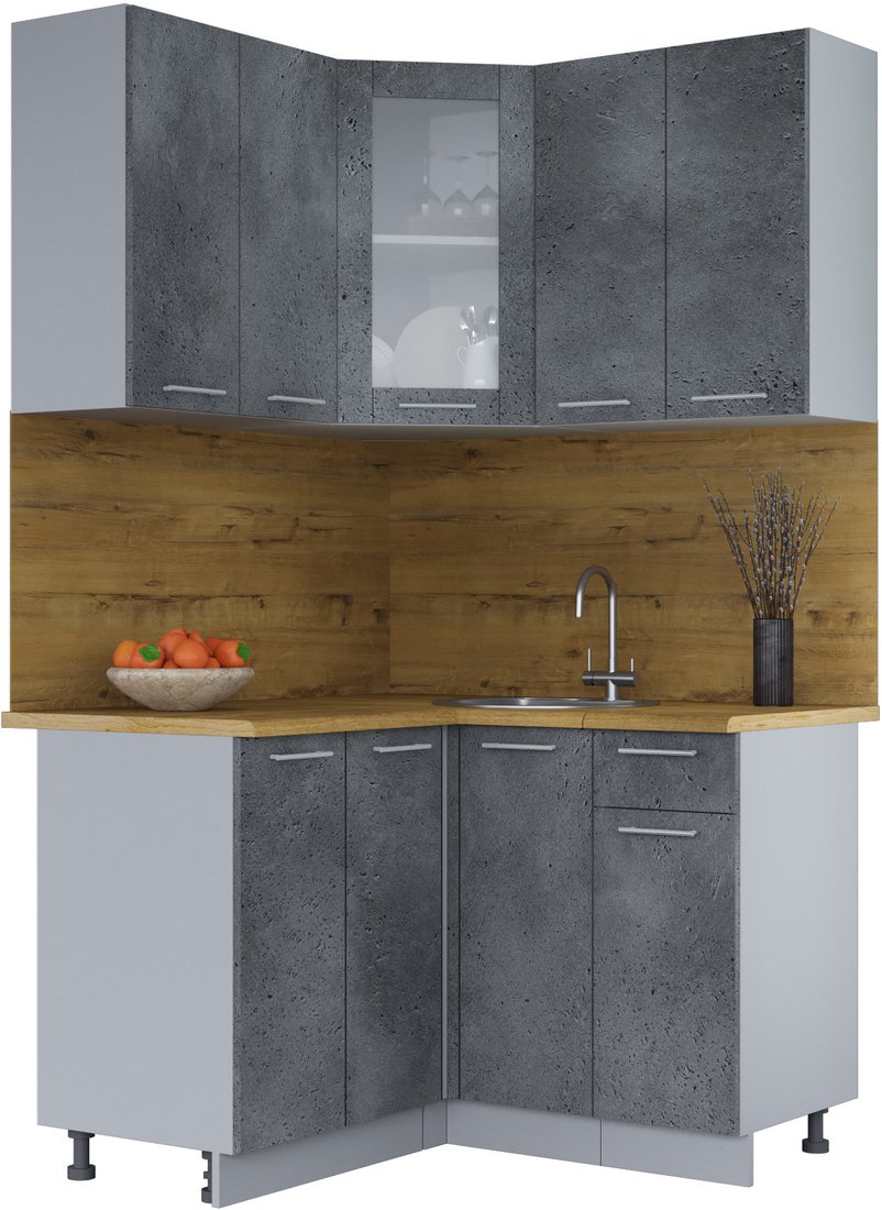 угловая, длина 120 см, ширина 120 см, каркас ЛДСП, фасад ЛДСП, установка мойки: врезная мойка, ширина шкафа под мойку 88 см