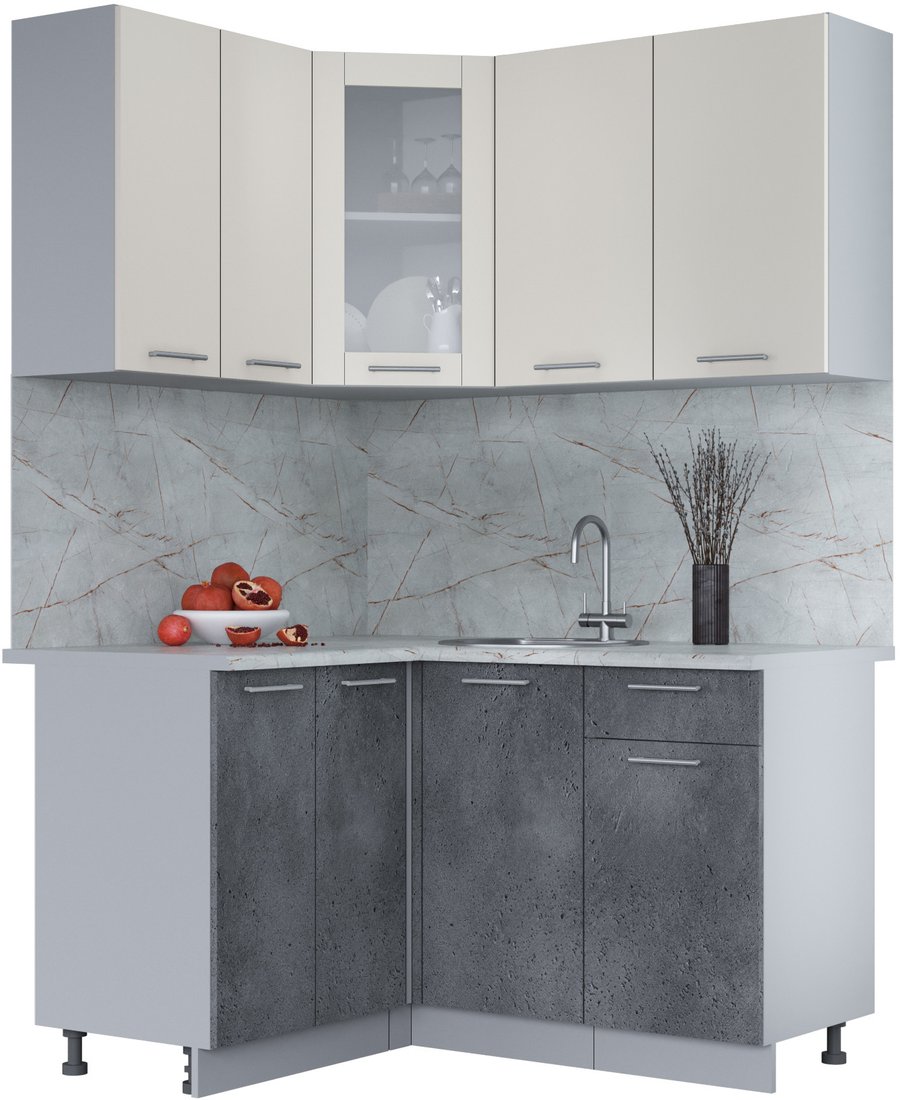 Готовая кухня Интерлиния Мила 12x14 (персидский жемчуг/бетон портленд/серый каспий)