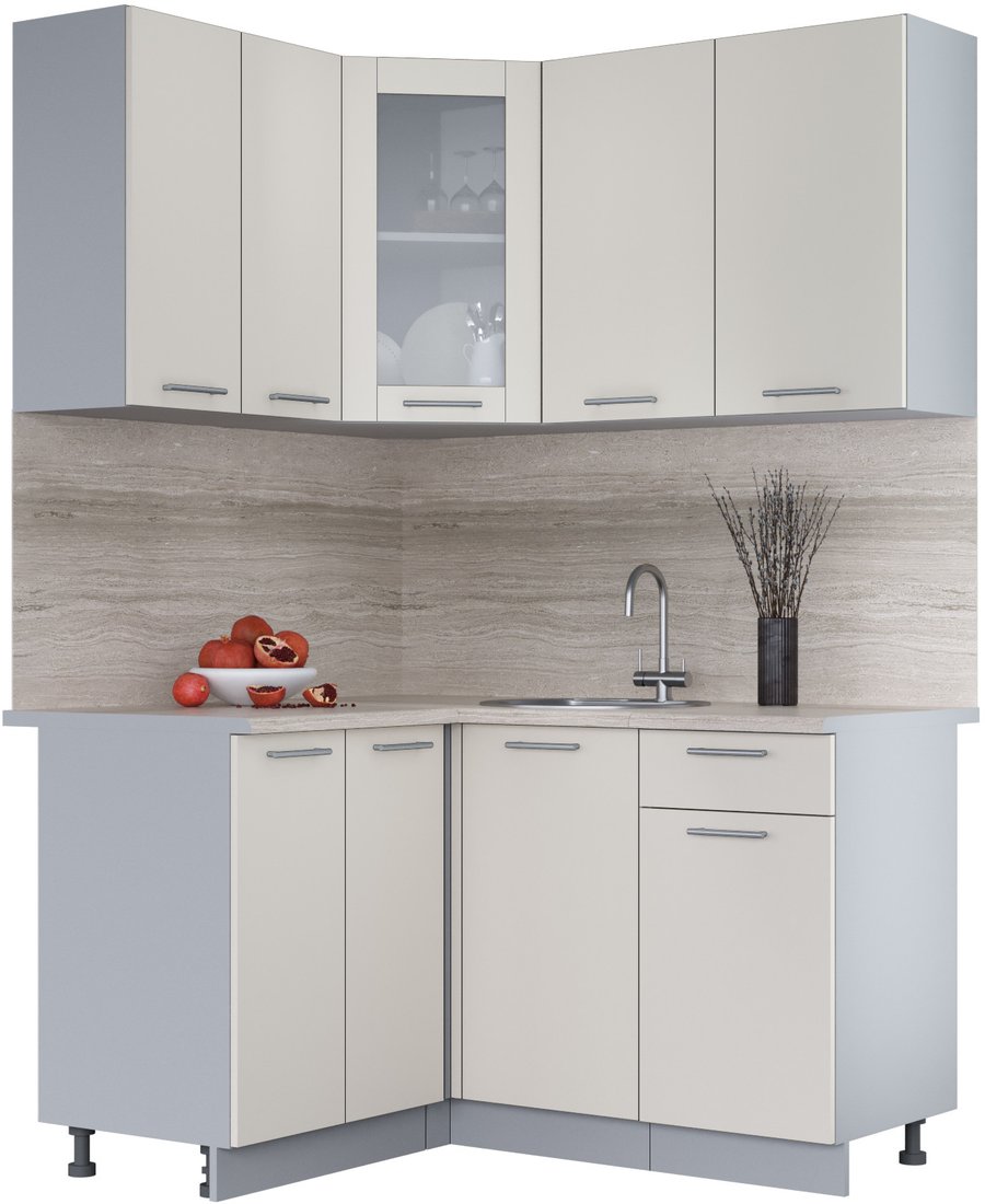 Готовая кухня Интерлиния Мила 12x14 (персидский жемчуг/персидский жемчуг/травертин серый)