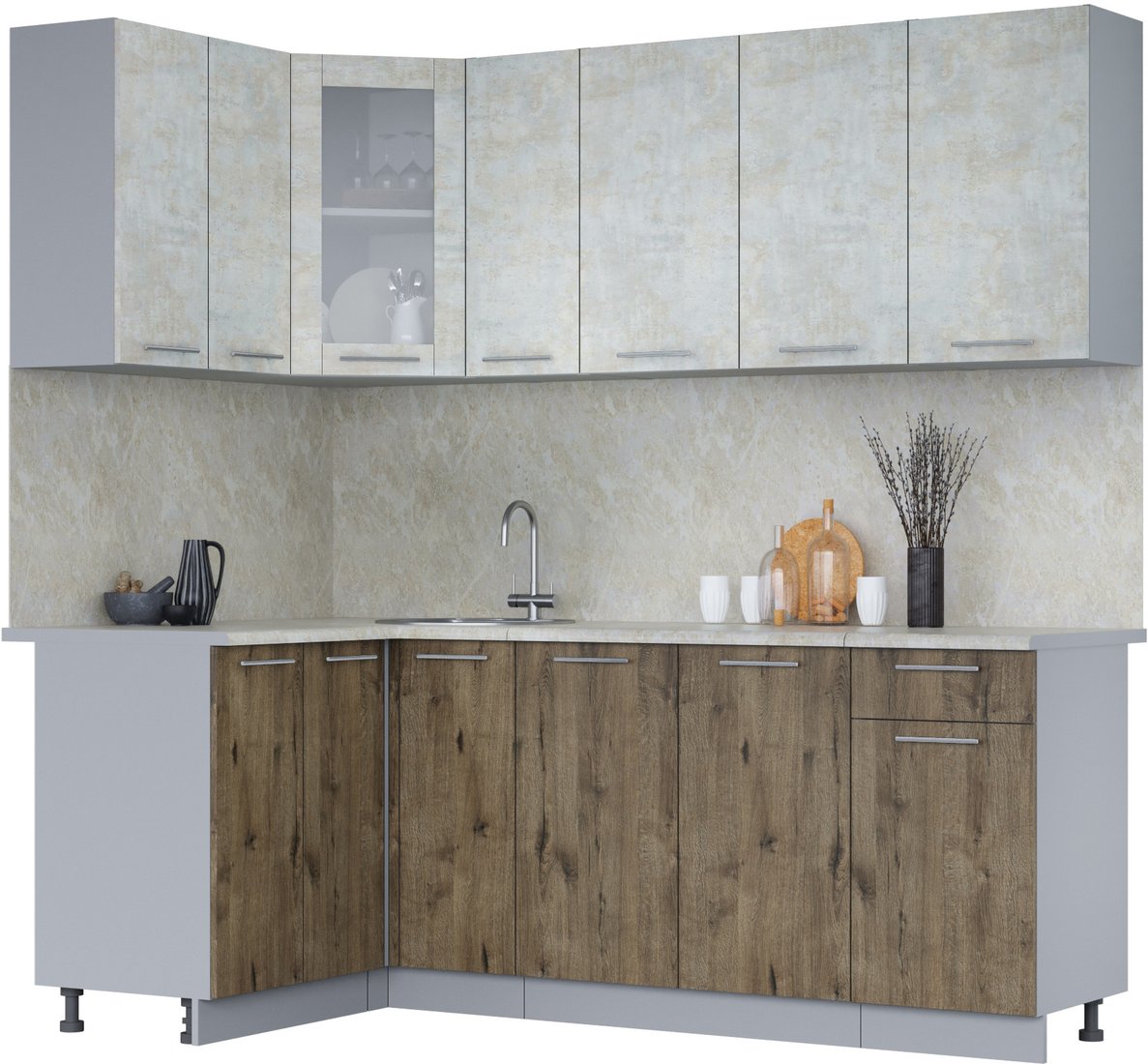 Готовая кухня Интерлиния Мила 12x21 (бетон лайт/дуб веллингтон/опал светлый)