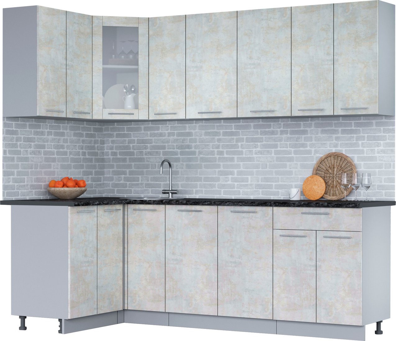 Готовая кухня Интерлиния Мила 12x23 (бетон лайт/бетон лайт/кастилло темный)