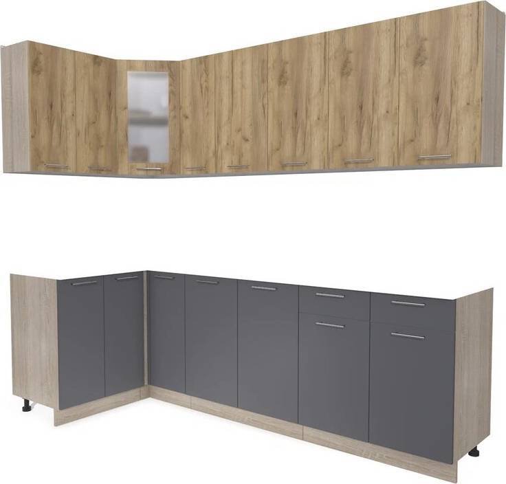 Готовая кухня Интерлиния Мила 12x25 без столешницы (дуб золотой/антрацит)