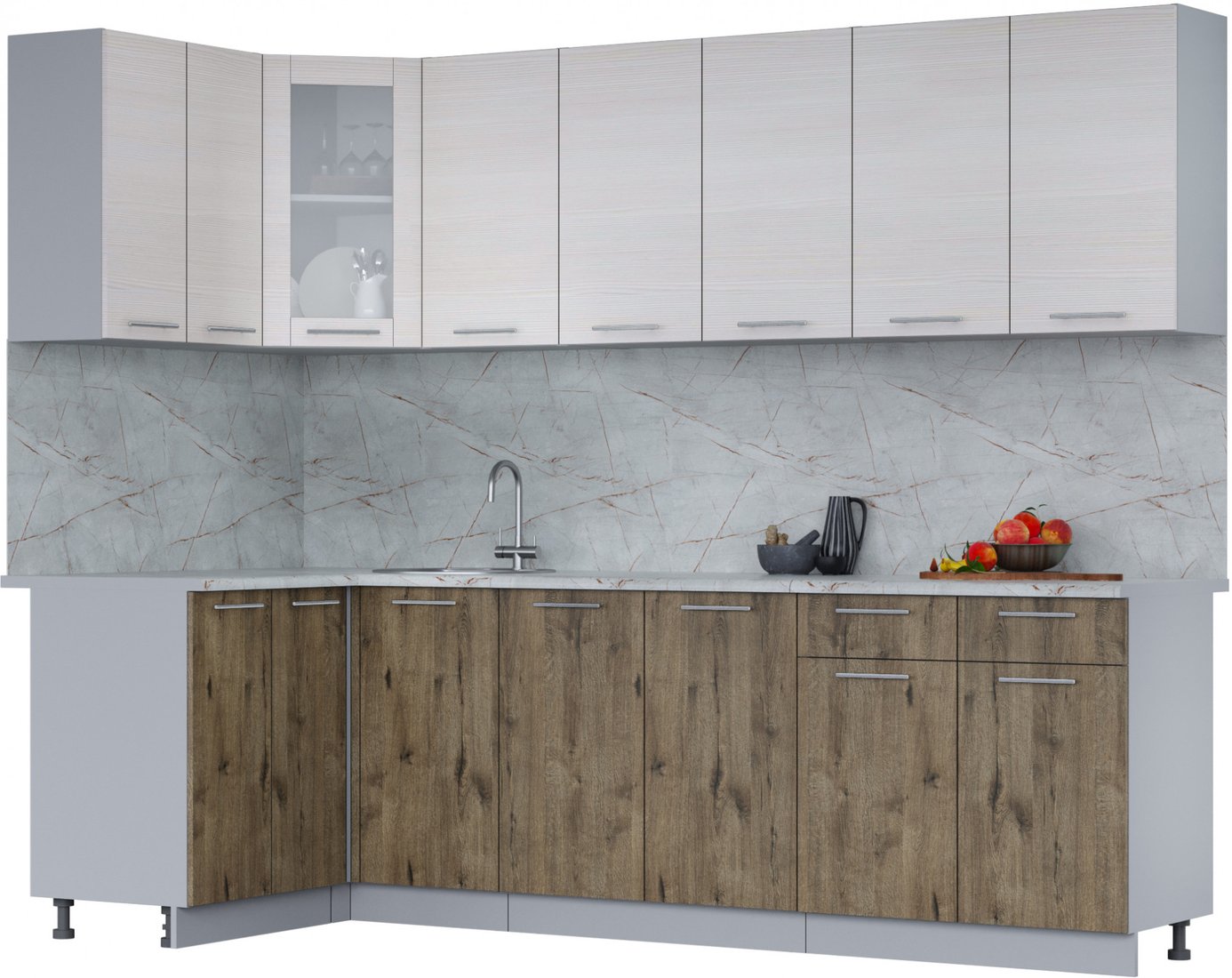 угловая, длина 260 см, ширина 120 см, каркас ЛДСП, фасад ЛДСП, установка мойки: врезная мойка, ширина шкафа под мойку 98 см