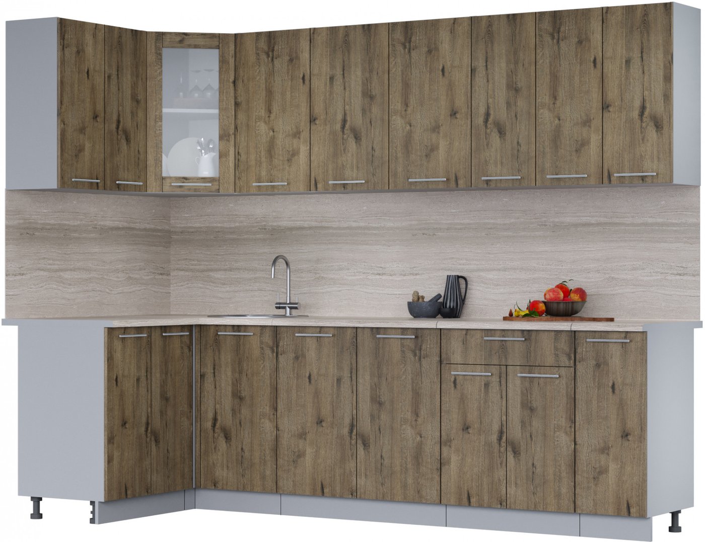 Готовая кухня Интерлиния Мила 12x27 (дуб веллингтон/дуб веллингтон/травертин серый)