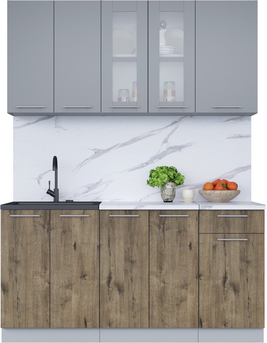 Готовая кухня Интерлиния Мила 16-60 (серебро/дуб веллингтон/белый гранит)