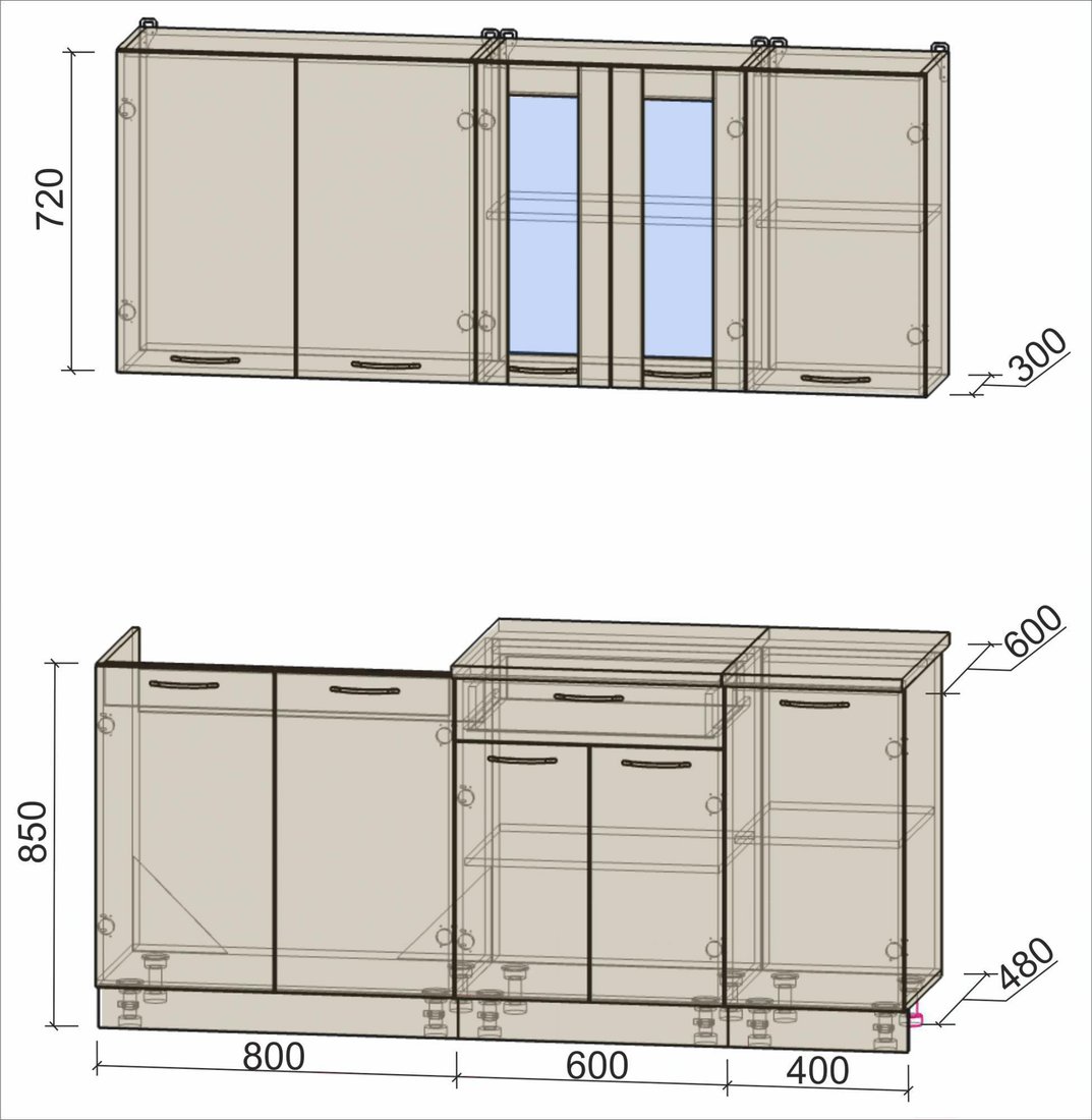 линейная, длина 180 см, ширина 60 см, каркас ЛДСП, фасад ЛДСП, установка мойки: накладная мойка, ширина шкафа под мойку 80 см
