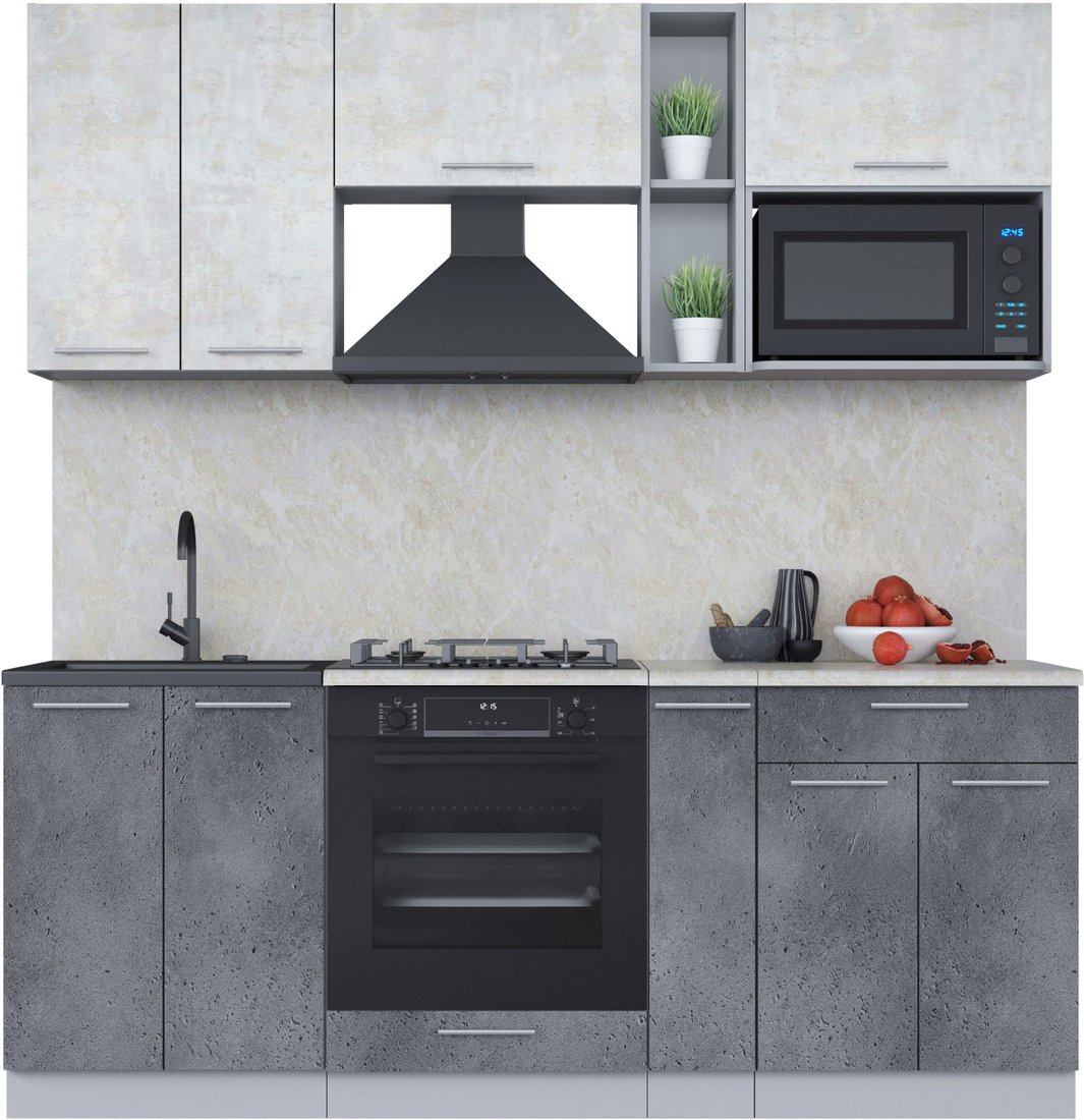 Готовая кухня Интерлиния Мила 2.0 ВТ (бетон лайт/бетон портленд/опал светлый)