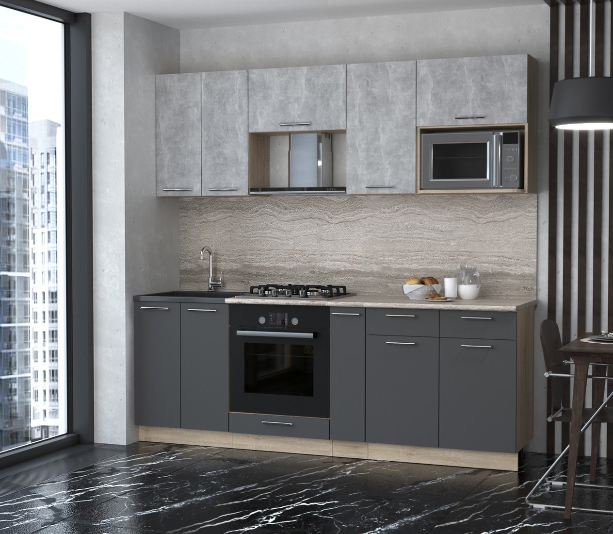 Готовая кухня Интерлиния Мила 2.2 ВТ (бетон/антрацит/травертин)