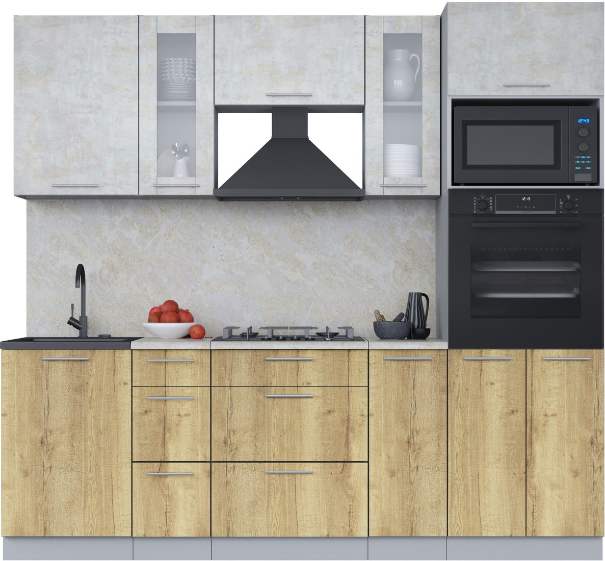 Готовая кухня Интерлиния Мила 2.3 ВТ (бетон лайт/дуб золотой/опал светлый)
