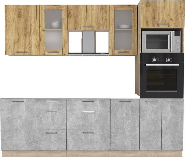 Готовая кухня Интерлиния Мила 2.5 ВТ без столешницы (дуб золотой/бетон)