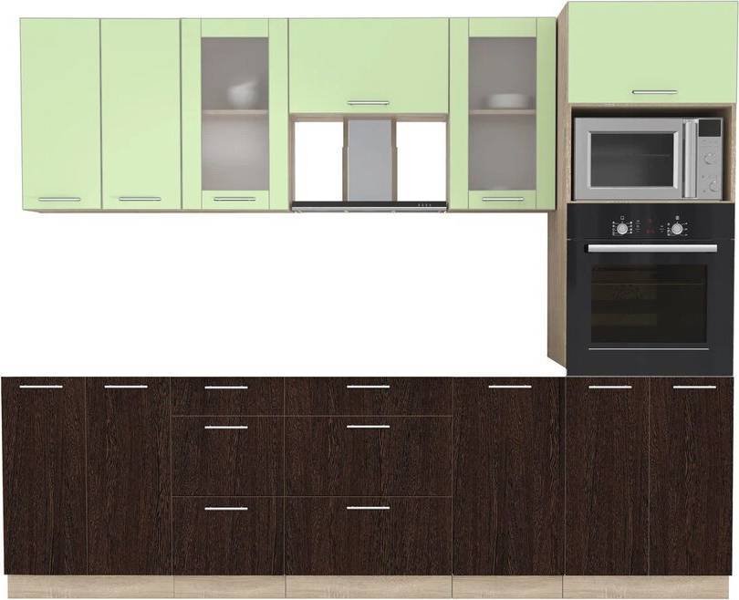 Готовая кухня Интерлиния Мила 2.6 ВТ без столешницы (салатовый/дуб венге)