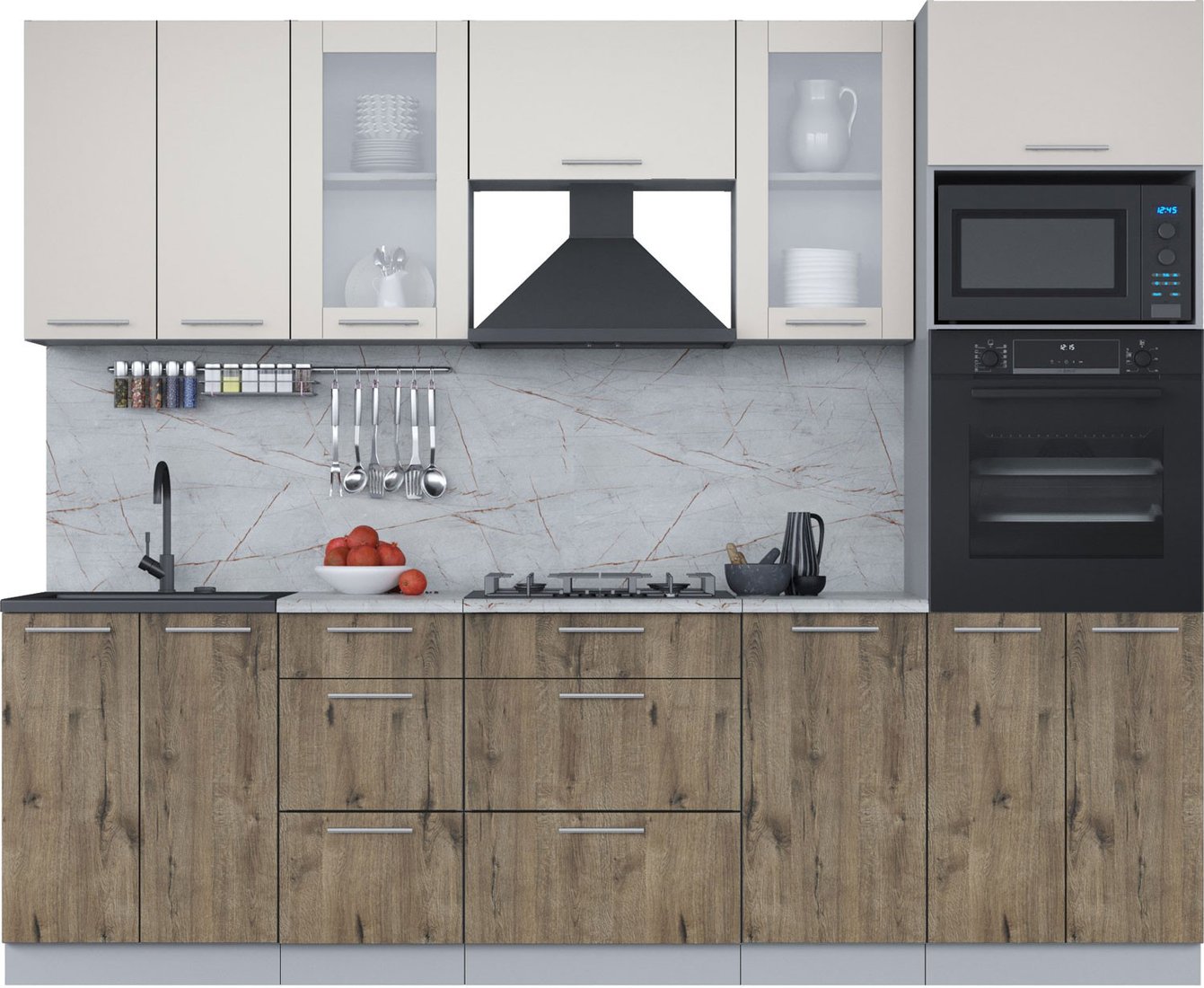 Готовая кухня Интерлиния Мила 2.6 ВТ (персидский жемчуг/дуб веллингтон/серый каспий)