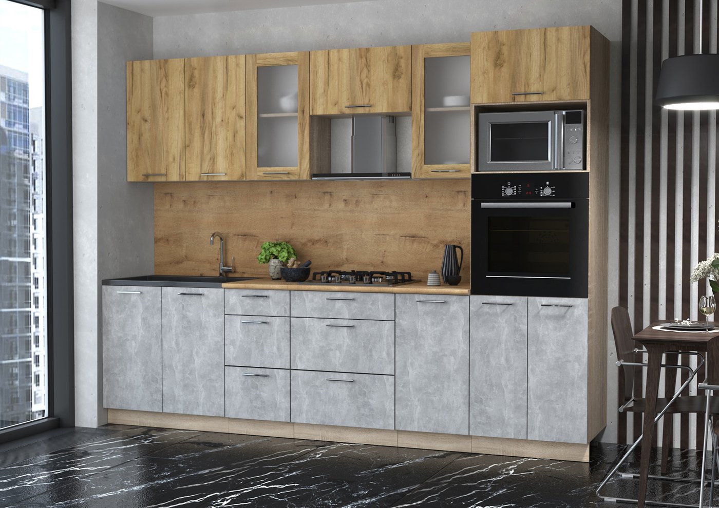 линейная, длина 280 см, ширина 60 см, каркас ЛДСП, фасад ЛДСП, установка мойки: накладная мойка, ширина шкафа под мойку 80 см