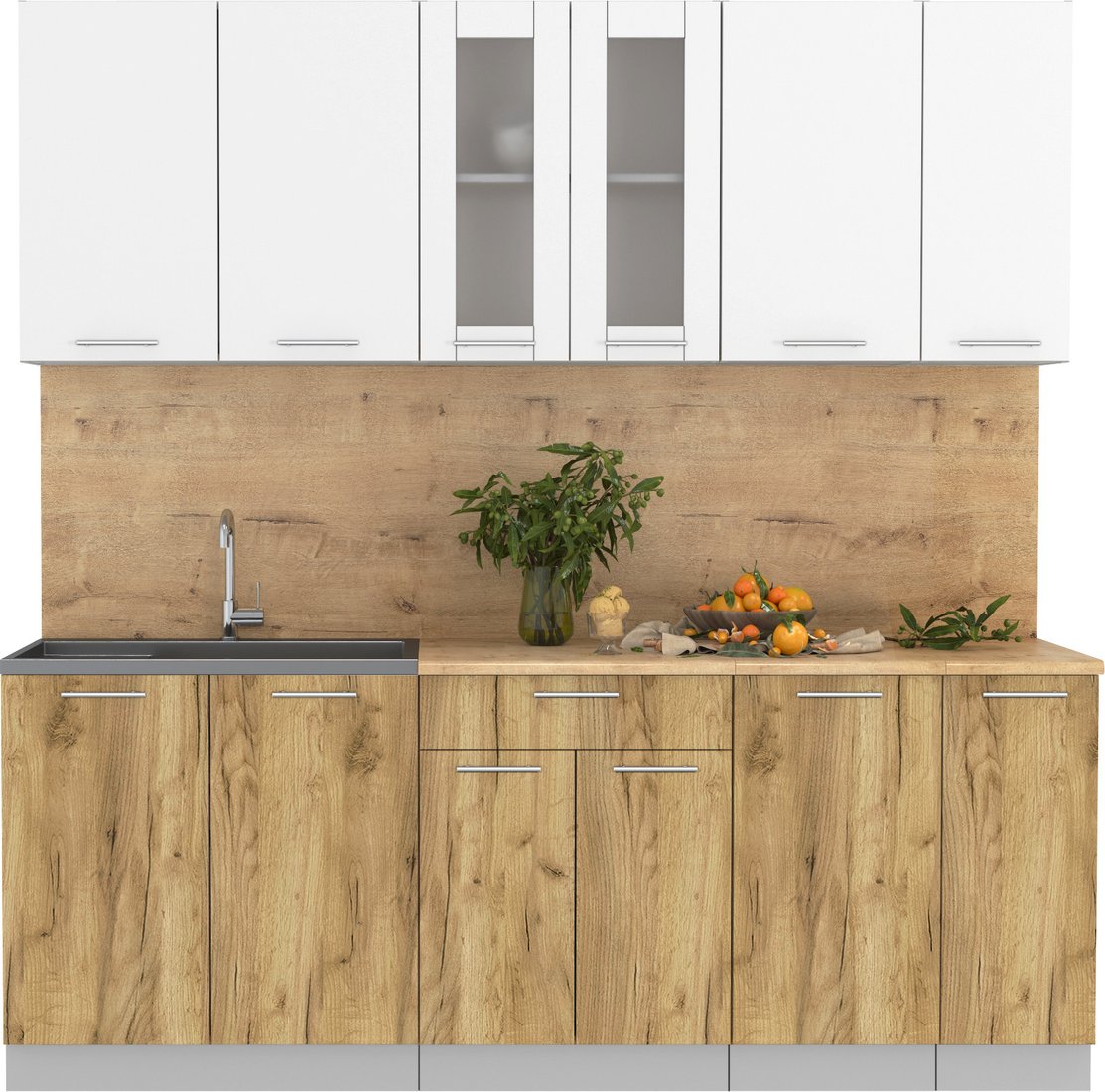 Готовая кухня Интерлиния Мила 21 (белый платинум/дуб золотой/дуб бунратти)