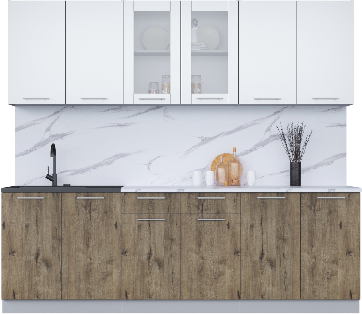 линейная, длина 240 см, ширина 60 см, каркас ЛДСП, фасад ЛДСП, установка мойки: накладная мойка, ширина шкафа под мойку 80 см