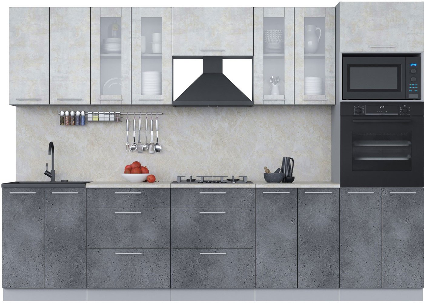 Готовая кухня Интерлиния Мила 3.0 ВТ (бетон лайт/бетон портленд/опал светлый)