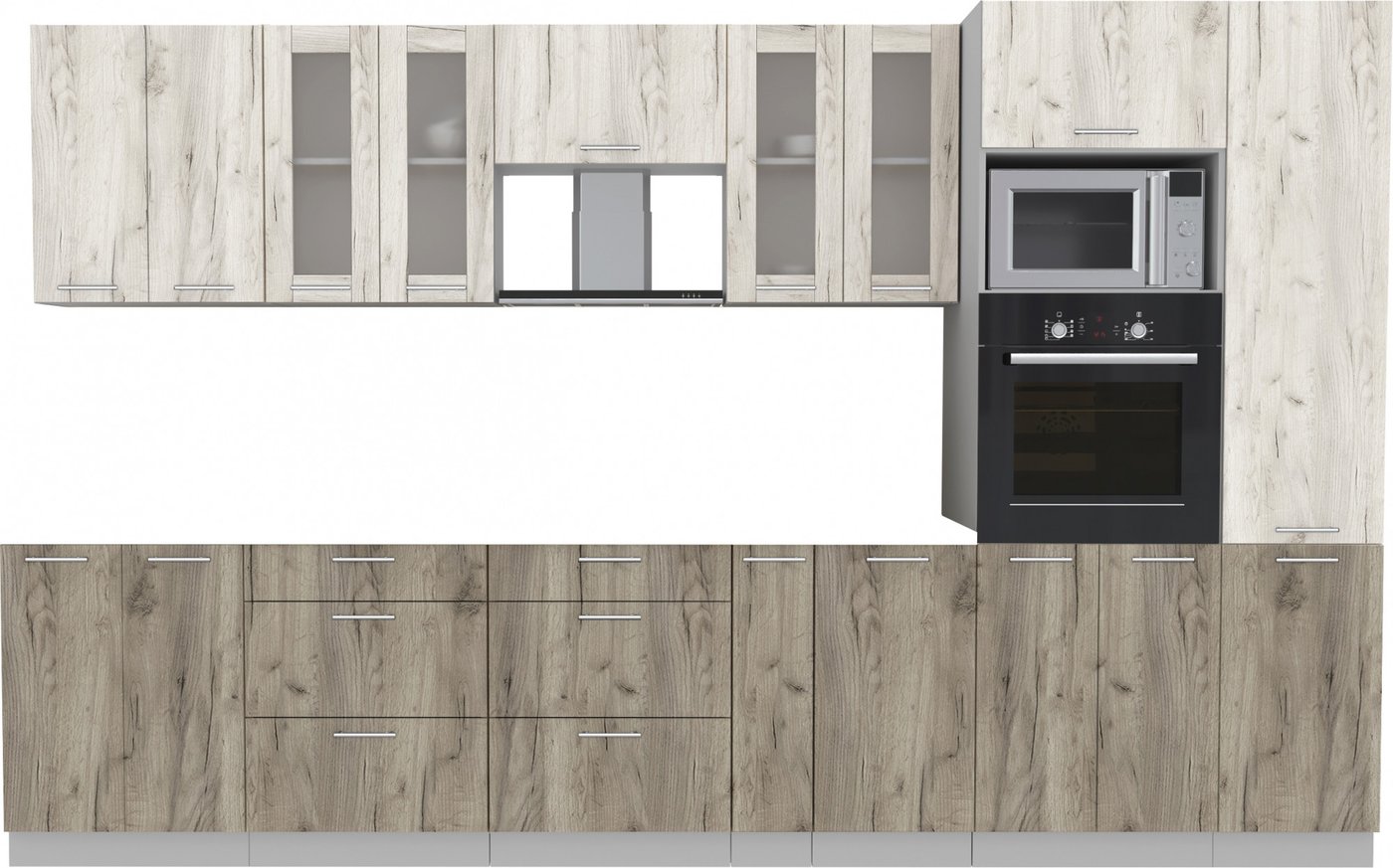 линейная, длина 340 см, ширина 57 см, каркас ЛДСП, фасад ЛДСП/стекло, ширина шкафа под мойку 60 см