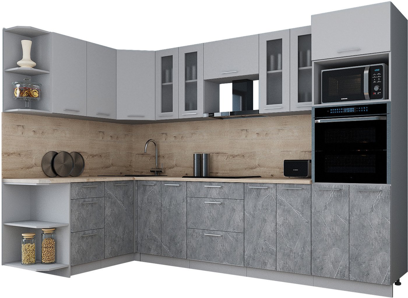 угловая, длина 300 см, ширина 168 см, каркас ЛДСП, фасад МДФ пленочный, установка мойки: врезная мойка, ширина шкафа под мойку 98 см
