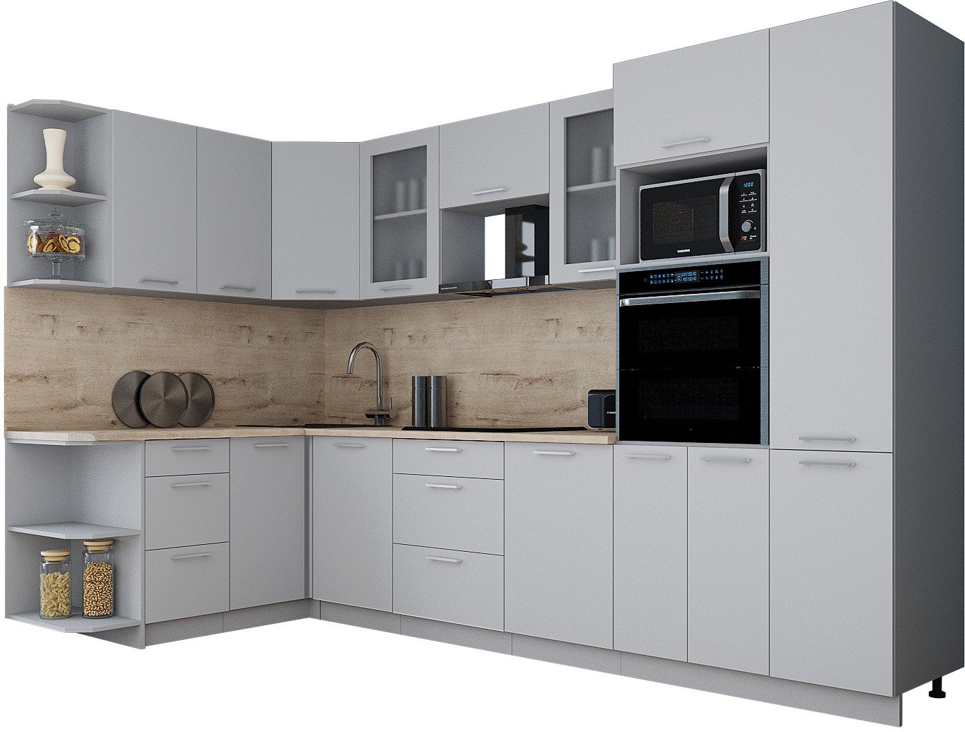 угловая, длина 320 см, ширина 168 см, каркас ЛДСП, фасад МДФ пленочный, установка мойки: врезная мойка, ширина шкафа под мойку 98 см