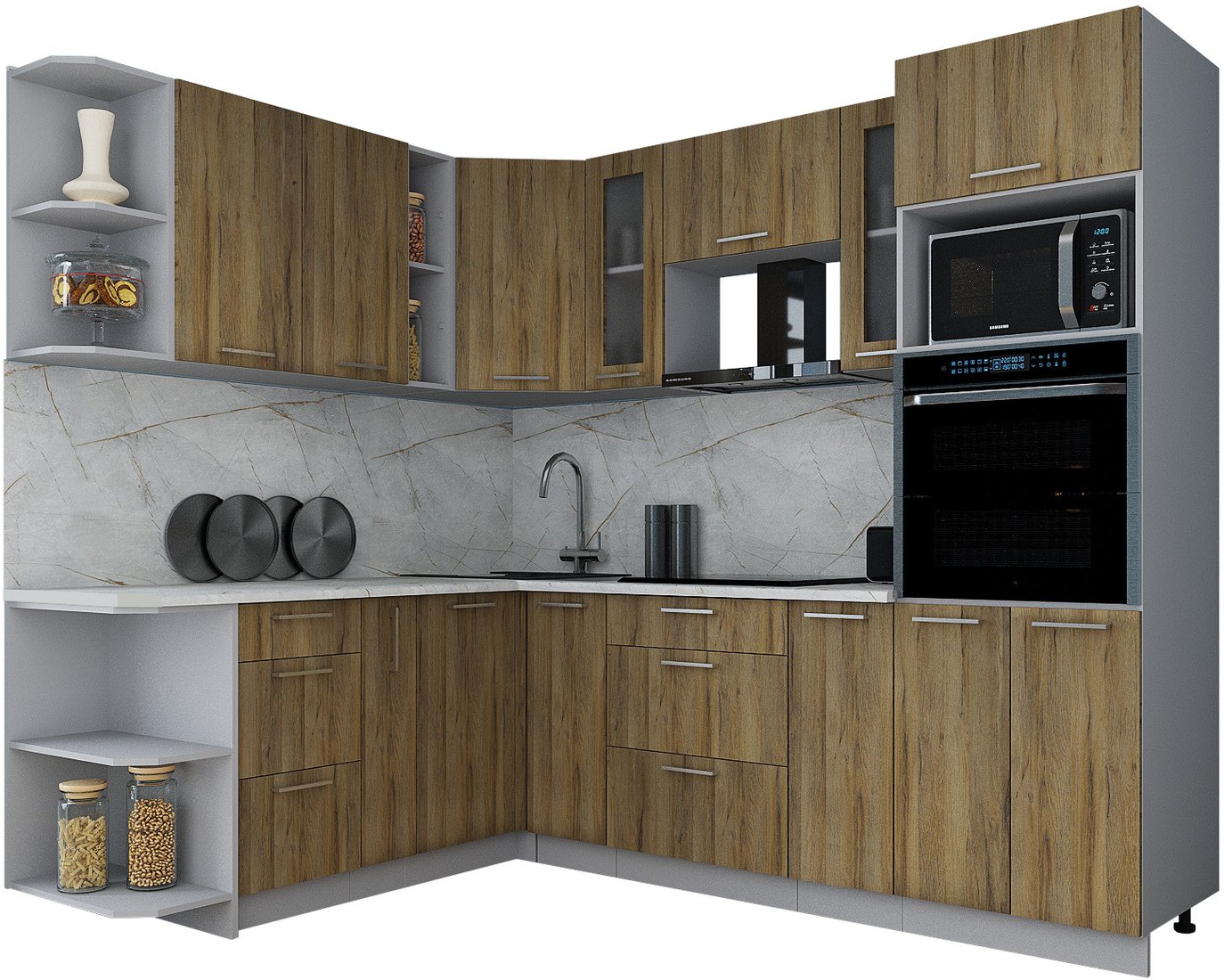Готовая кухня Интерлиния Мила Gloss 1.88x2.4 левая (дуб вотан/дуб вотан/травертин серый)