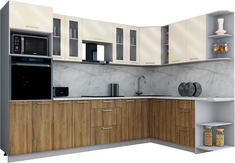 Готовая кухня Интерлиния Мила Gloss 1.88x3.0 правая (ваниль глянец/дуб вотан/травертин серый)