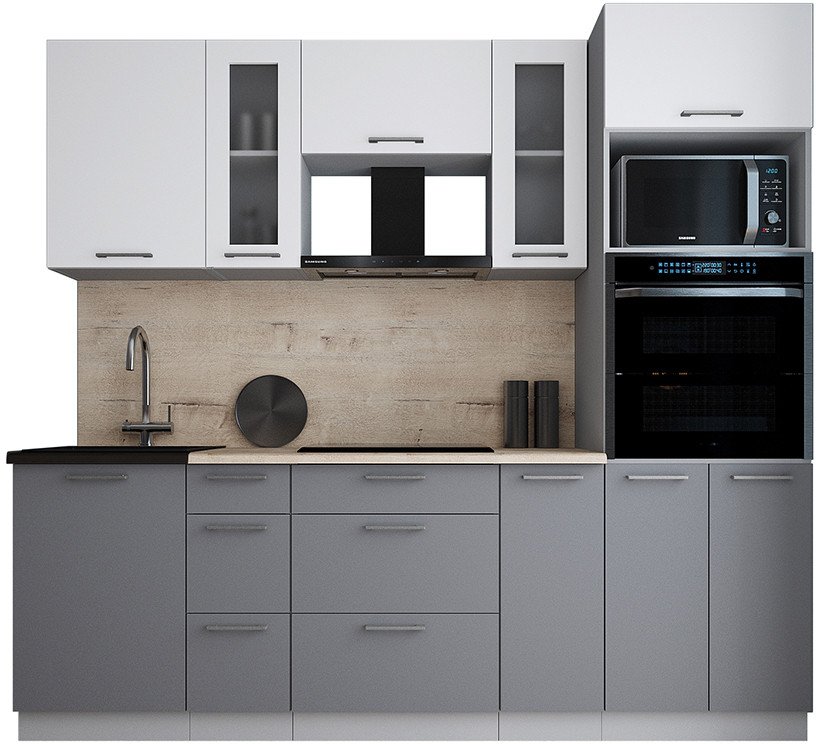линейная, длина 230 см, ширина 60 см, каркас ЛДСП, фасад МДФ пленочный, установка мойки: накладная мойка, ширина шкафа под мойку 50 см