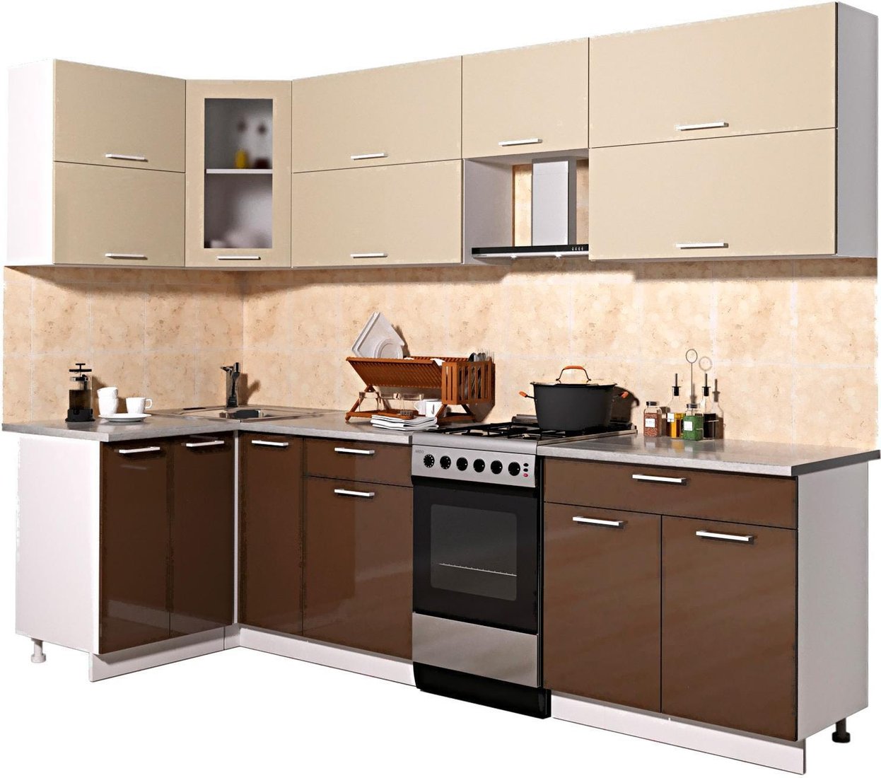 Готовая кухня Интерлиния Мила Gloss 50-12x27 (ваниль/шоколад глянец)