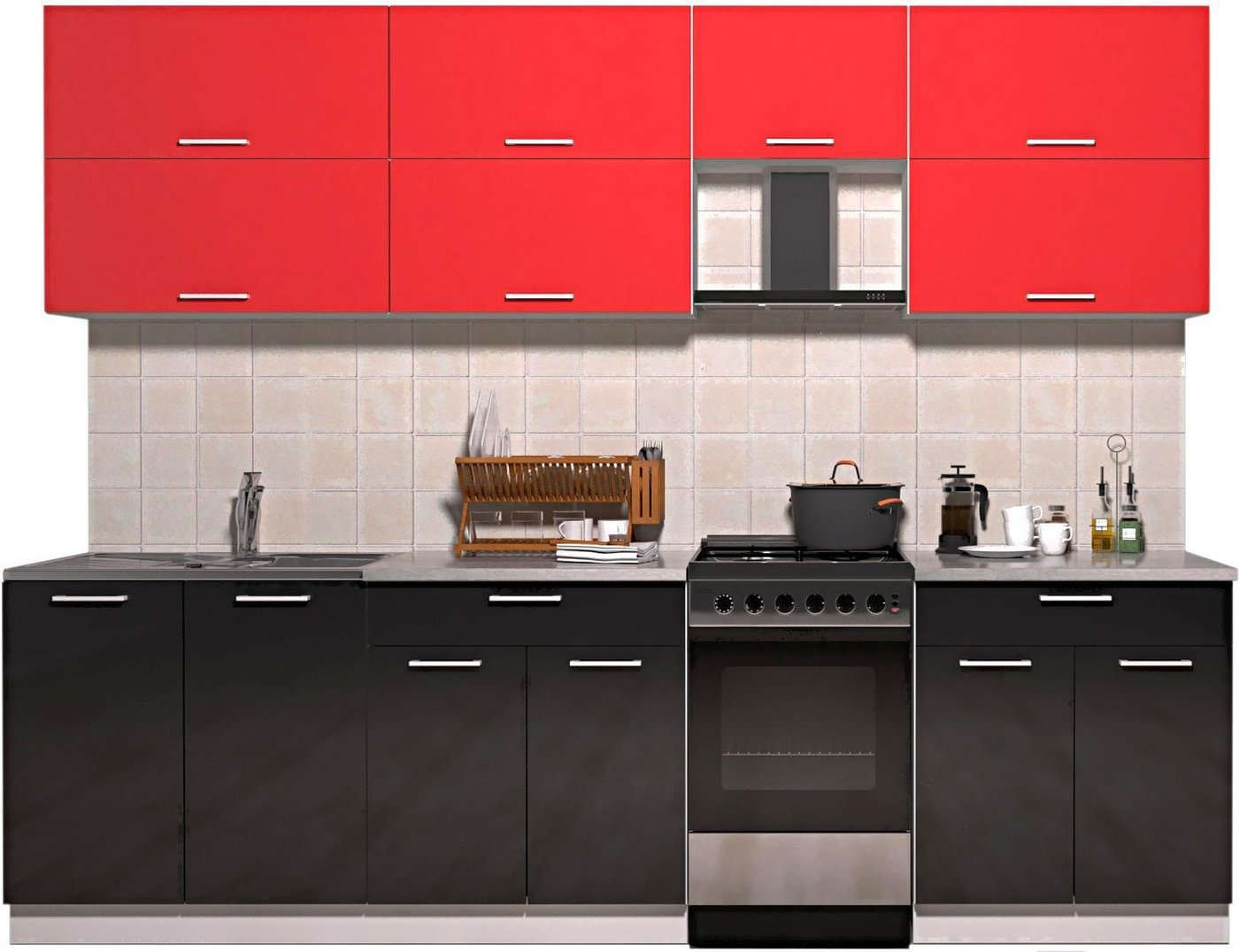 Готовая кухня Интерлиния Мила Gloss 50-27 (красный/черный глянец)