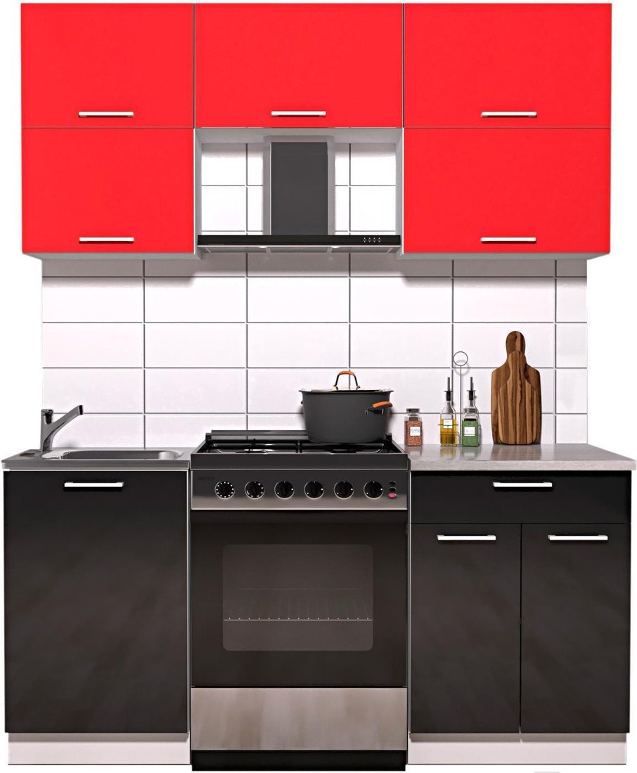 Готовая кухня Интерлиния Мила Gloss 60-17 (красный/черный глянец)