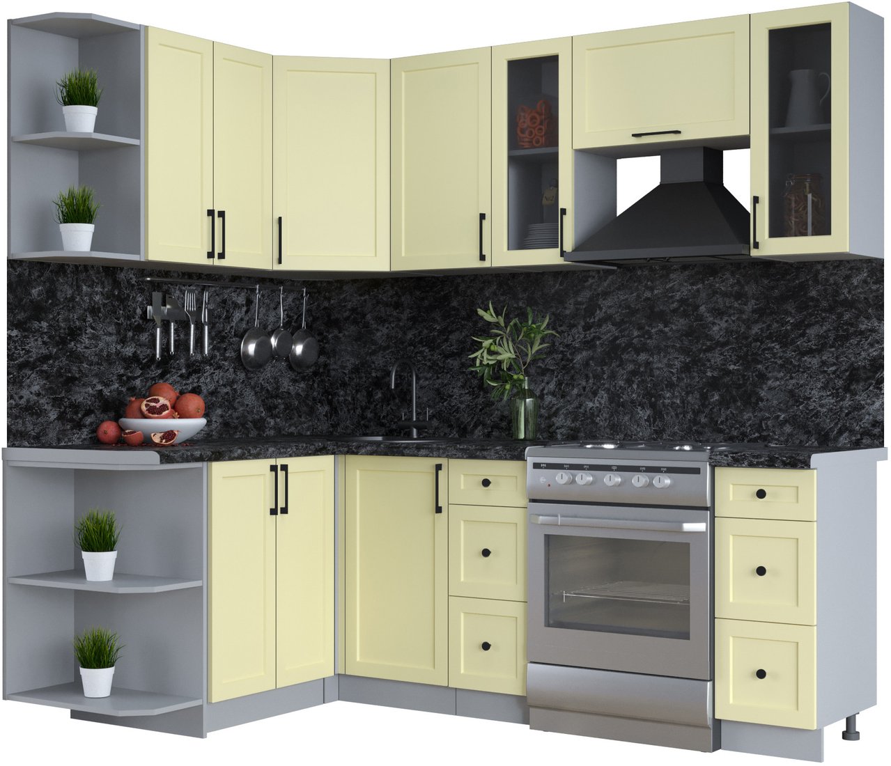 угловая, длина 220 см, ширина 150 см, каркас ЛДСП, фасад МДФ пленочный, установка мойки: врезная мойка