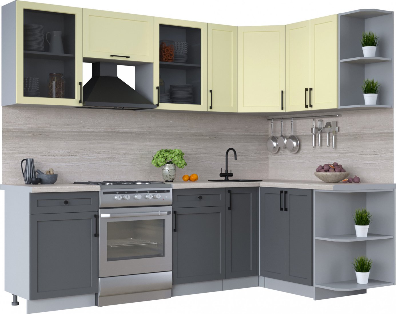 Готовая кухня Интерлиния Тренд 1.5x2.5 правая (пепел/слоновая кость/травертин серый)