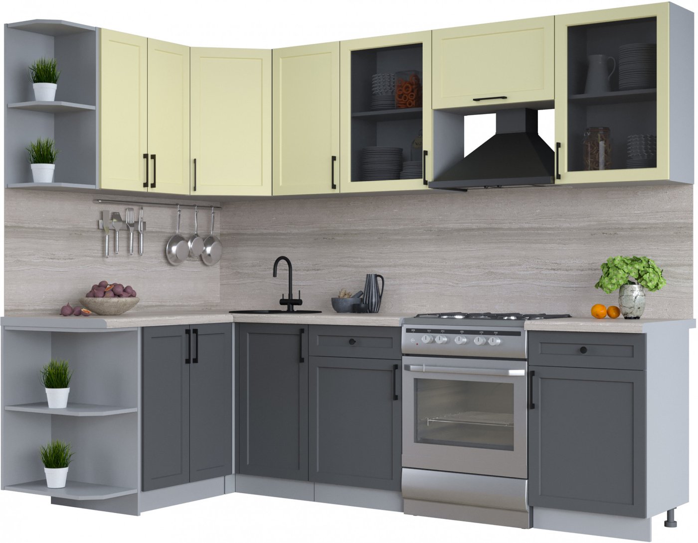 Готовая кухня Интерлиния Тренд 1.5x2.6 левая (пепел/слоновая кость/травертин серый)