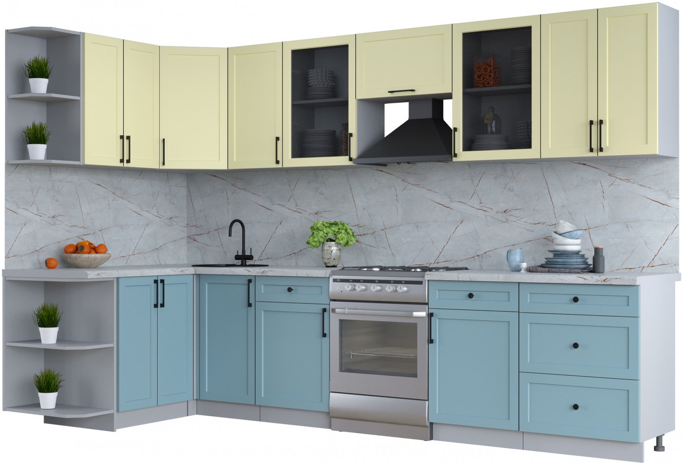 Готовая кухня Интерлиния Тренд 1.5x3.2 левая (океан/слоновая кость/серый каспий)