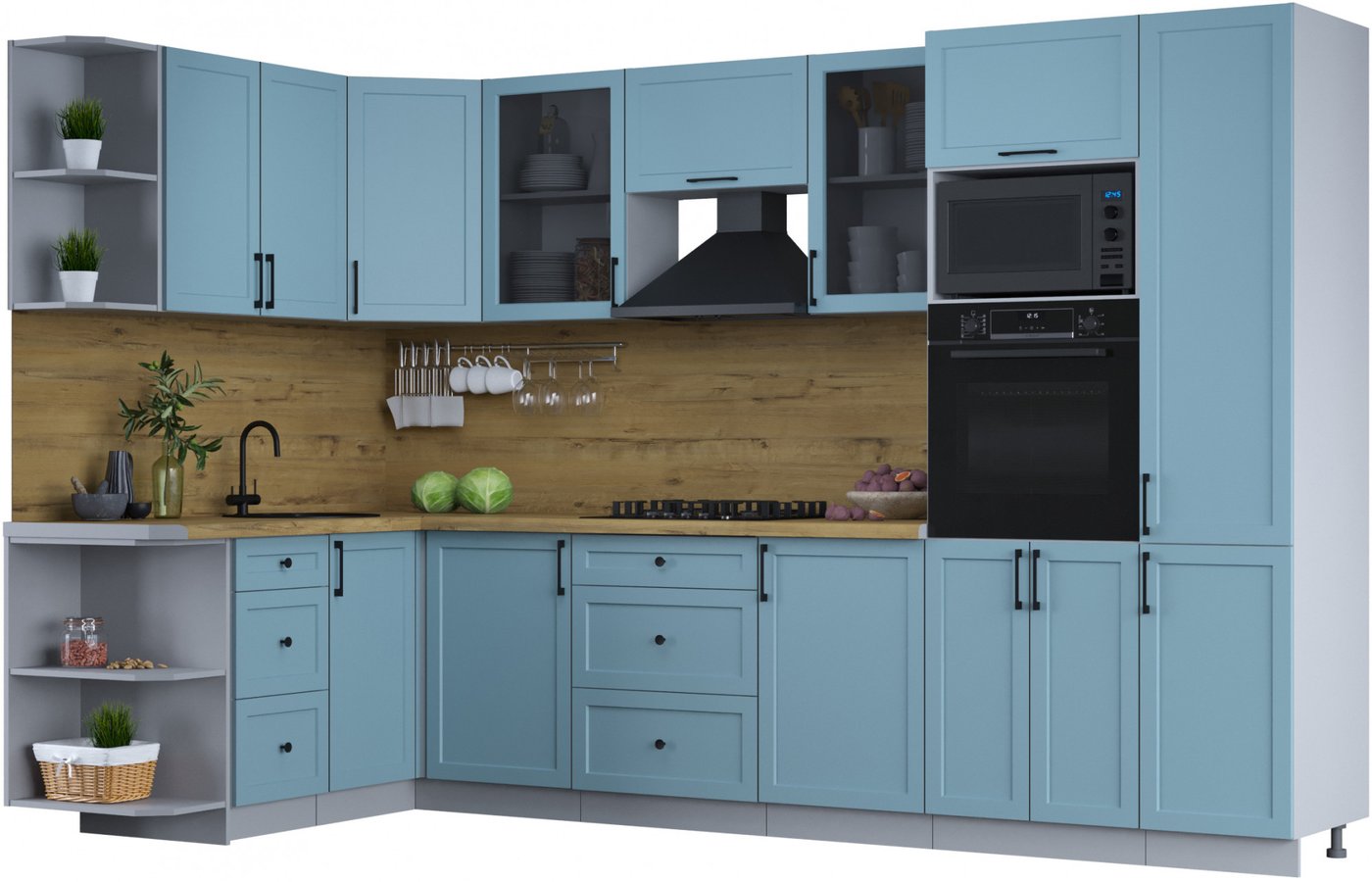 Готовая кухня Интерлиния Тренд 1.68x3.2 ВТ левая (океан/океан/дуб бунратти)