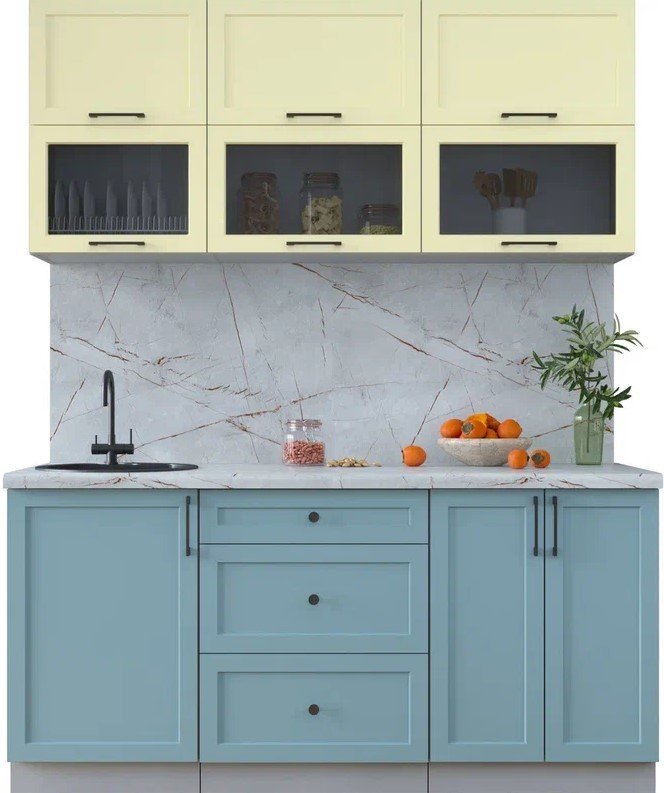 Готовая кухня Интерлиния Тренд 1.7Б (океан/слоновая кость/серый каспий)
